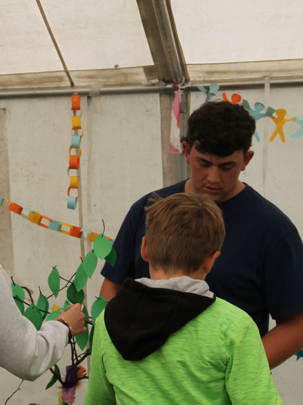Heute startete der Tag mit verschiedenen Workshops zur Vorbereitung des Gottesdienstes. Die Kinder bastelten Deko, banden ein Kreuz und schrieben eigene Fürbitten.